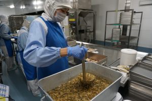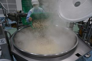 【給食センターでしめじを調理する様子】