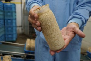 香川第一きのこセンターでは、株用のぶなしめじ、カット用のぶなしめじの2種類を栽培しています。同じぶなしめじでも、カット用は加工に向いている菌種が選ばれています。長野県にあるきのこ総合研究所では、おいしくて丈夫なきのこを日々研究開発しており、そこで厳選された菌が使われています。