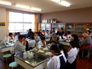 初めて目にするホピブルーや粉砕機、タコス作りに子どもたちは大盛り上がりでした。もちろんタコスの具には、大西さんのサニーレタスを使っています。学習の中で大西さんから農家のおもしろさ、大変さなどたくさんの話を聞くことができ、食育だけでなく、キャリア教育としても貴重な時間になりました。